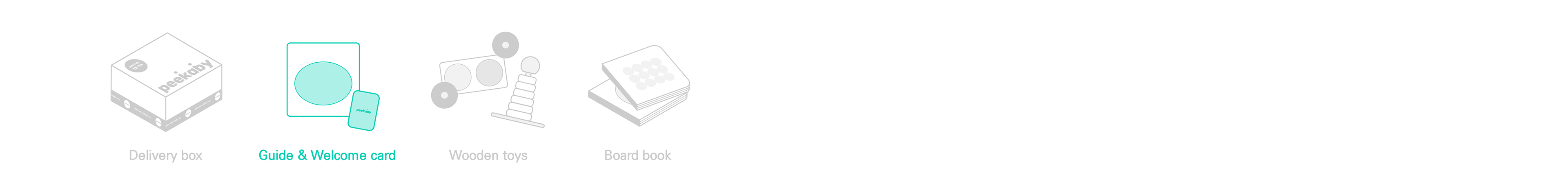 Peekaby provides joy in unboxing and play toys suited to the children with suitable content curated according to their age. As the subscription service of this is the main content, We wanted to enhance the age group recognition by designing a package box in a simple letter with the Peekaby logo based on an achromatic box to be naturally applied to all the various product lines.